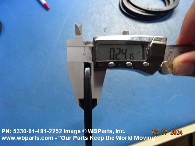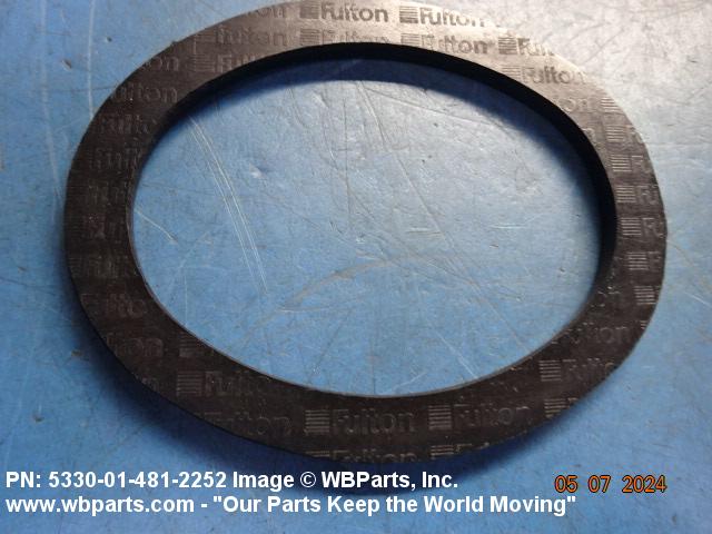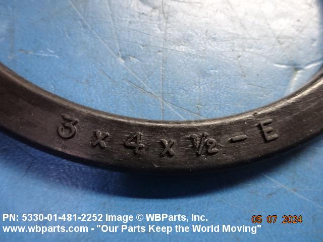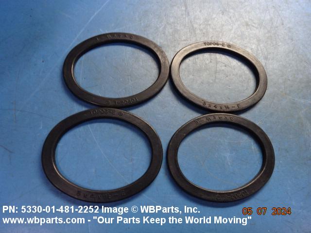 5330-01-481-2252 A deformable material which prevents the passage of matter through the joint formed when two faces are joined. It may be metallic or nonmetallic, lubricated or impregnated, solid or hollow cross section. It may be made to any predetermined dimension and shape. Excludes flat disks, items made of felt material and items having joints. For round metal and plastic items with an aperture and a solid rectangular cross section, see WASHER, FLAT; SHIM; BEARING, WASHER, THRUST; and SPACER RING. Excludes DISK, VALVE; SEAL, NONMETALLIC ANGLE; SEAL, NONMETALLIC CHANNEL; SEAL, NONMETALLIC SPECIAL SHAPED SECTION; SHIELDING GASKET, ELECTRONIC; and RING, SEALING JAR.