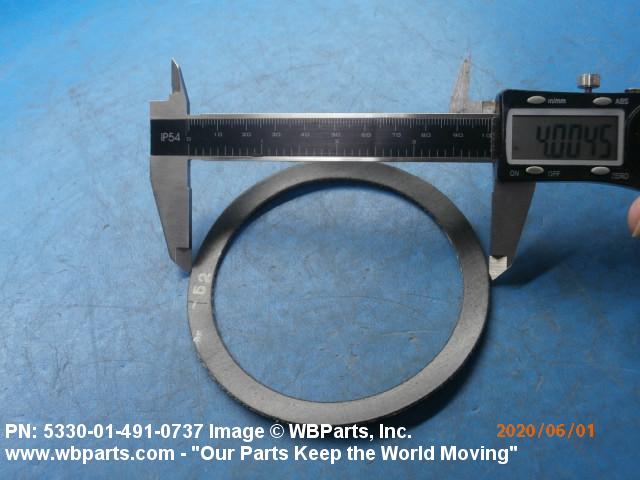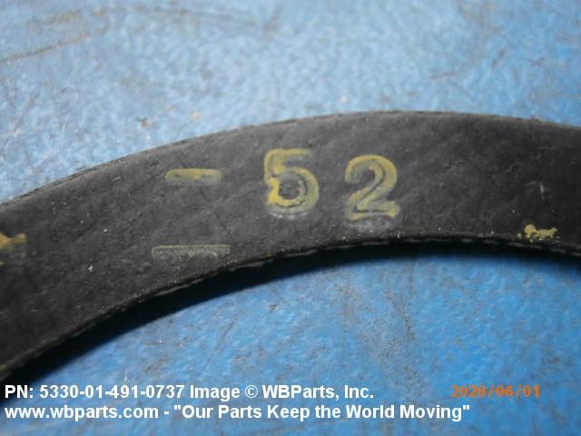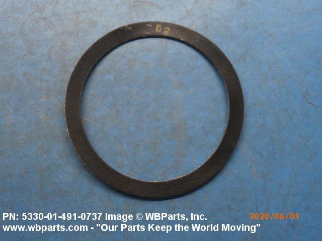 5330-01-491-0737 A deformable material which prevents the passage of matter through the joint formed when two faces are joined. It may be metallic or nonmetallic, lubricated or impregnated, solid or hollow cross section. It may be made to any predetermined dimension and shape. Excludes flat disks, items made of felt material and items having joints. For round metal and plastic items with an aperture and a solid rectangular cross section, see WASHER, FLAT; SHIM; BEARING, WASHER, THRUST; and SPACER RING. Excludes DISK, VALVE; SEAL, NONMETALLIC ANGLE; SEAL, NONMETALLIC CHANNEL; SEAL, NONMETALLIC SPECIAL SHAPED SECTION; SHIELDING GASKET, ELECTRONIC; and RING, SEALING JAR.