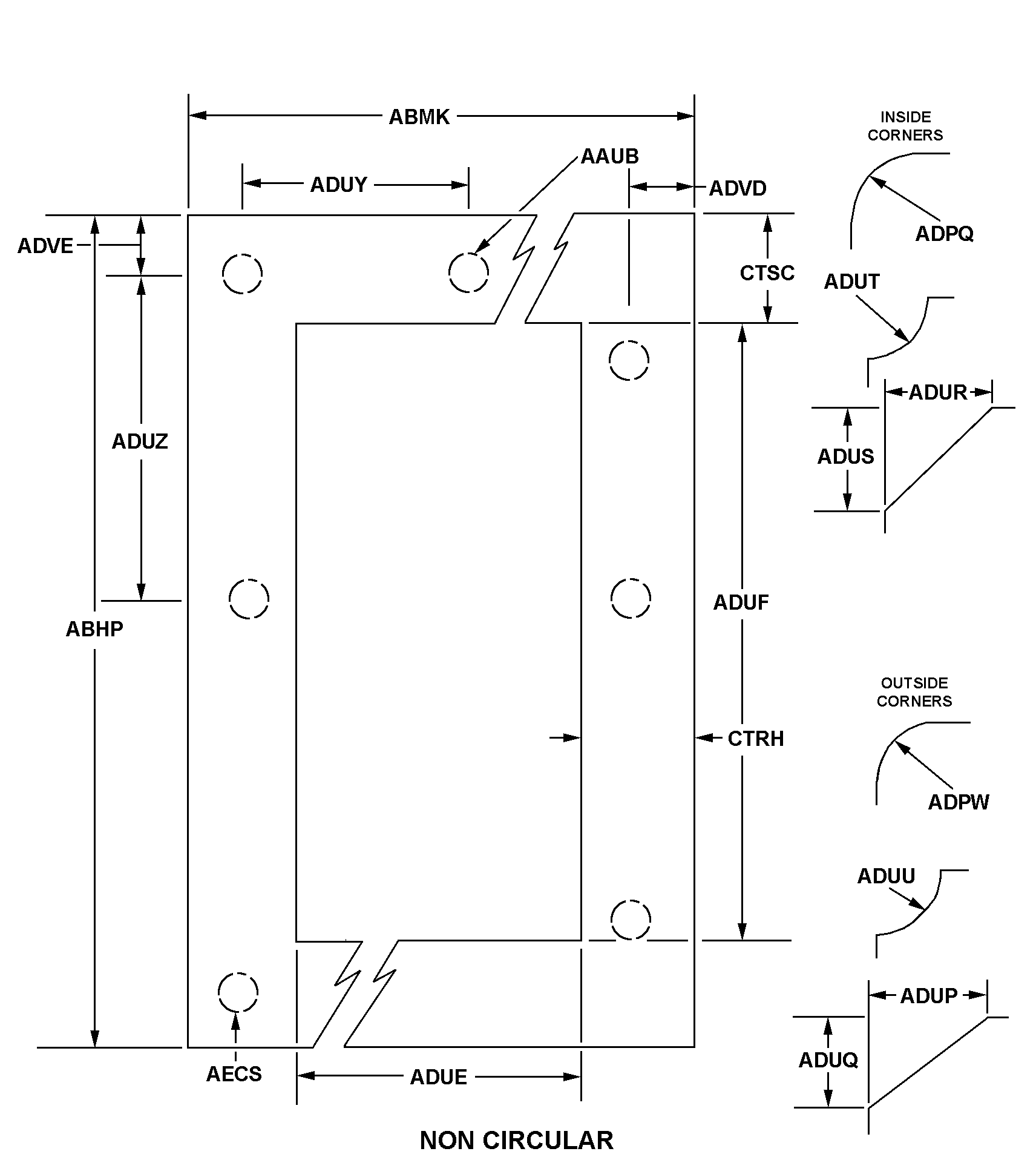 | OUTSIDE CORNER RADIUS | 0.605 INCHES NOMINAL |