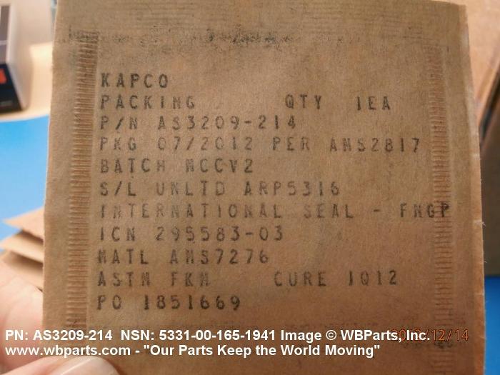 | AS3209-214 | 0XK26 | SEALS & PACKINGS, INC. |