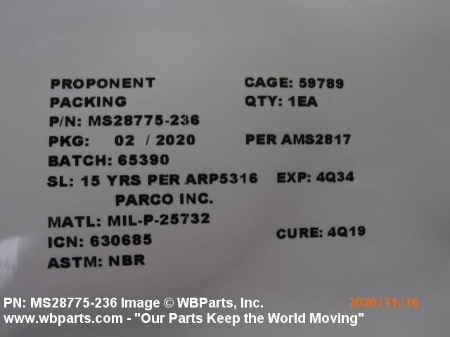 | MS28775-236 | 81343 | SOCIETY OF AUTOMOTIVE ENGINEERS INC |