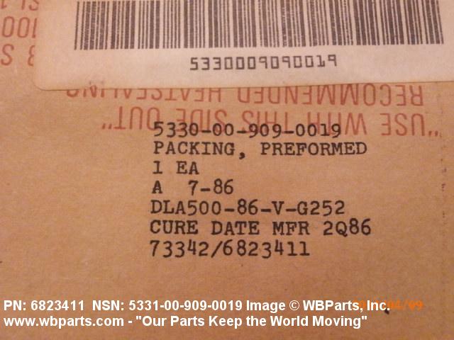 Part Alternates: 6823411, 5331-00-909-0019, 00-909-0019, 5331009090019, 009090019
