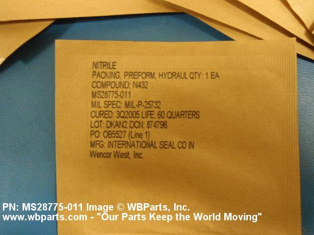 Part Alternates: MS28775011, MS28775-011, MS28775011ES, MS28775-011ES, 204-18731-1 , 2443641800, 5331-01-035-0988, 01-035-0988, 5331010350988, 204187311, 010350988