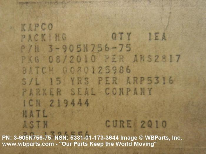 | 3-905N756-75 | 02697 | PARKER-HANNIFIN CORPORATION DBA O'RING DIVISION OF PARKER |