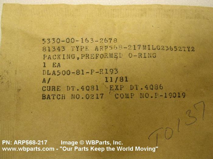 Part Alternates: ARP568217, ARP568-217, 568217, 568-217, 945843F116, 9458-43F116, 5331-01-206-6122, 01-206-6122, 5331012066122, 012066122