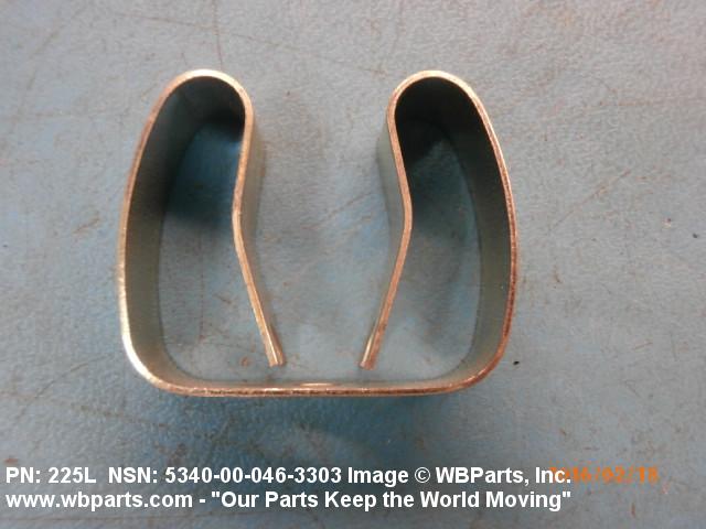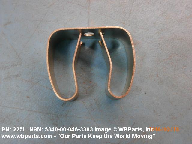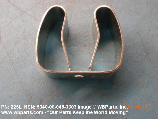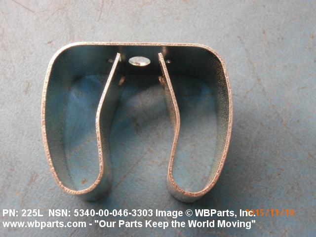 5340-00-046-3303 A preformed item of semirigid material designed to retain, position, fasten, or support other items, such as cable(s), access cover(s), by its own inherent spring action. It may be fastened to a structure by bolt(s), clip(s), screw(s), and the like. For items conducting electric current, see CLIP, ELECTRICAL or CLAMP, ELECTRICAL. For items which partially surround an item, see STRAP, RETAINING. For items which entirely surround an item and do not have inherent spring tension, see CLAMP, LOOP. See also CLIP, RETAINING. Do not use if a more specific item name is available.