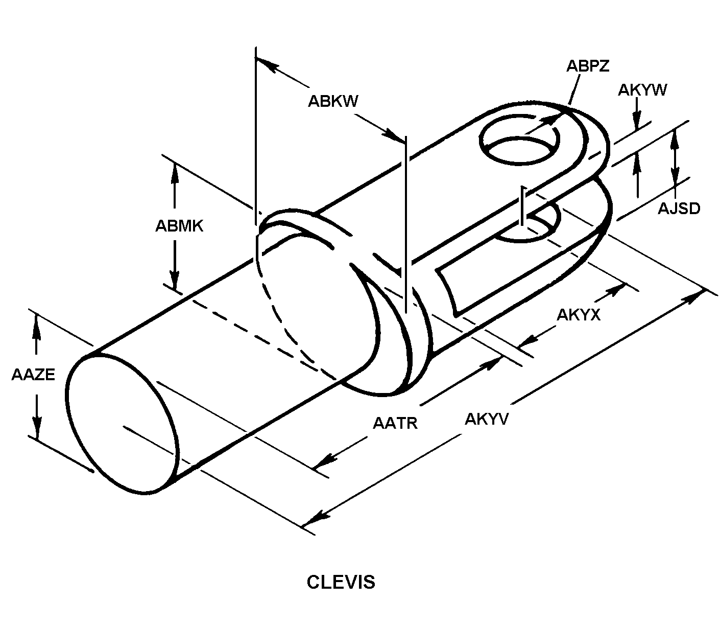 5340-00-088-6945 A forked part, having transverse hole(s) or slot(s) in each arm (prong) to accommodate a bolt, pin, or the like, and having a connection facility opposite the fork. It is designed to be attached to a shaft, rod, turnbuckle or the like by welding, threading, and/or pinning. May include provisions for locking. See also YOKE, UNIVERSAL JOINT and CONNECTOR, ROD END. For items specifically designed for aviation, see CLEVIS, ROD END, AVIATION.20210050018Guns, through 30mm53400020Hardware, Commercial