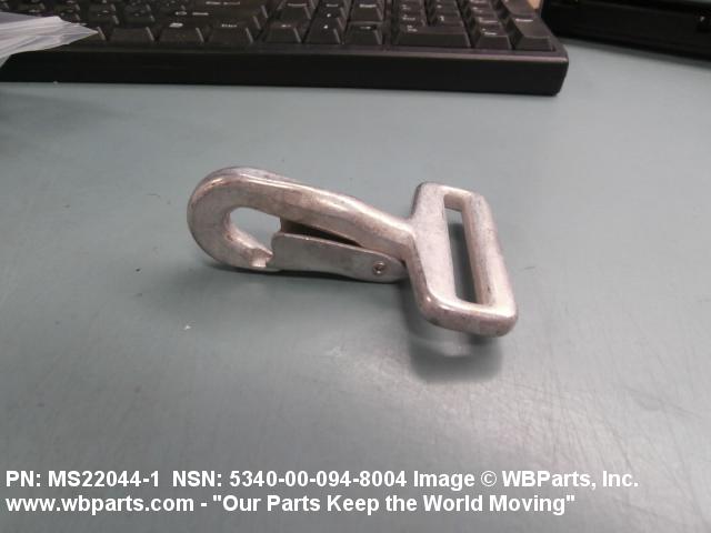 5340-00-094-8004 A metal fastening device one or both ends of which are hook shaped with a closing or locking device over the throat opening which is held closed by spring action. If hook shaped on one end only the opposite end is provided with a fixed, loose, or swivel loop or opening for connecting to another item. Excludes cargo hooks with safety devices.