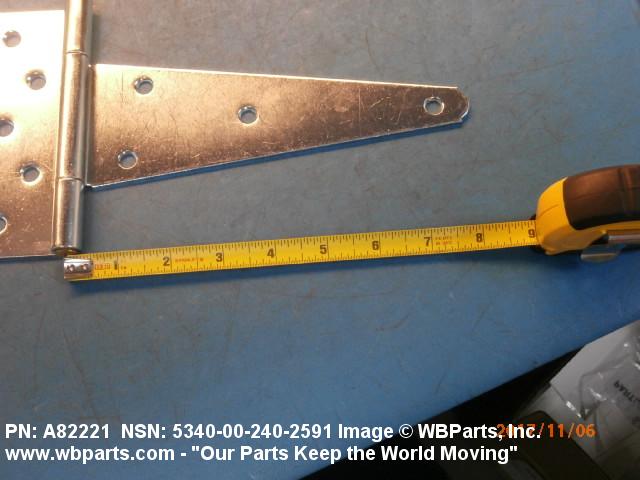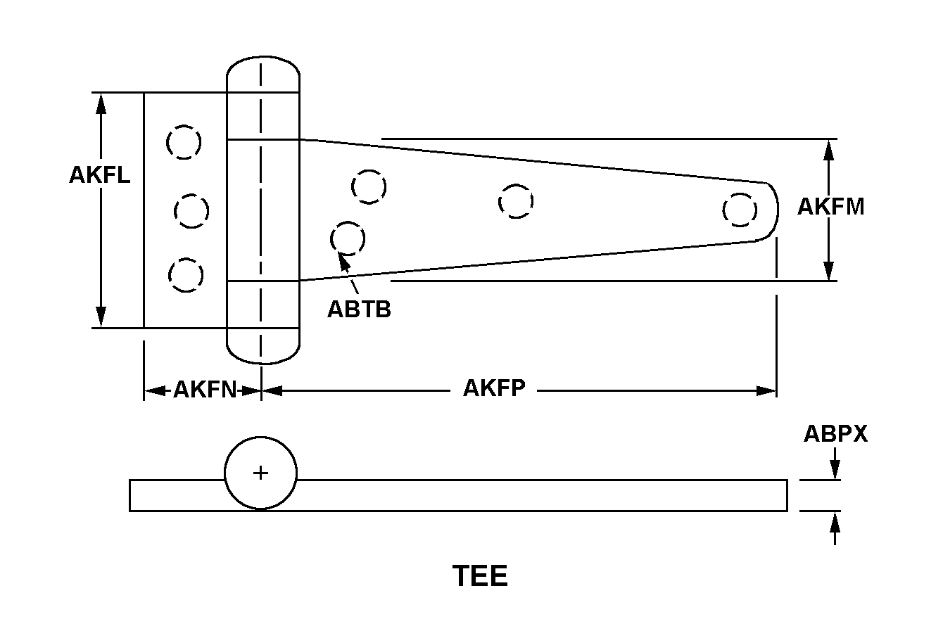 5340-00-128-0250 A hinge whose general shape is like the letter T, with one leaf resembling that of a butt hinge, and the other that of a strap hinge. The hinge may also have both leaves resembling strap hinges or butt hinges of different widths.
