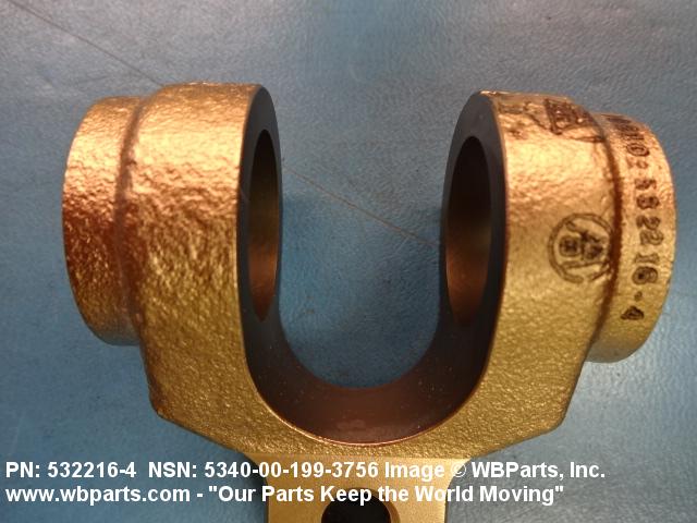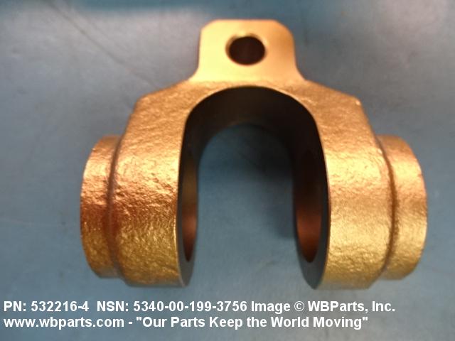 5340-00-199-3756 A forked part, having transverse hole(s) or slot(s) in each arm (prong) to accommodate a bolt, pin, or the like, and having a connection facility opposite the fork. It is designed to be attached to a shaft, rod, turnbuckle or the like by welding, threading, and/or pinning. May include provisions for locking. See also YOKE, UNIVERSAL JOINT and CONNECTOR, ROD END. For items specifically designed for aviation, see CLEVIS, ROD END, AVIATION.20210050018Guns, through 30mm53400020Hardware, Commercial