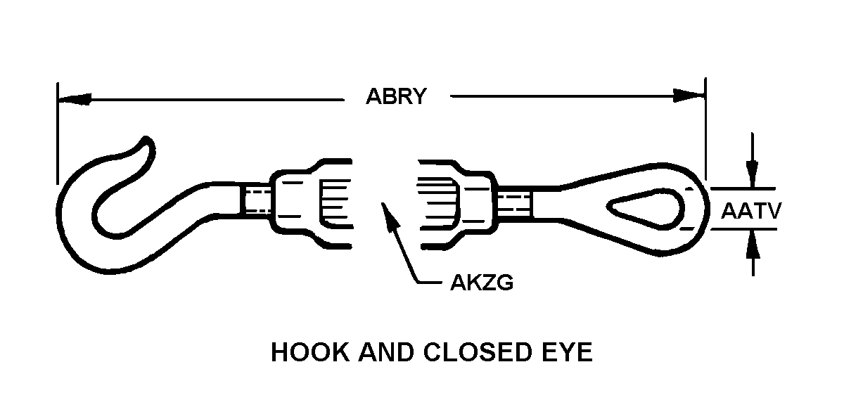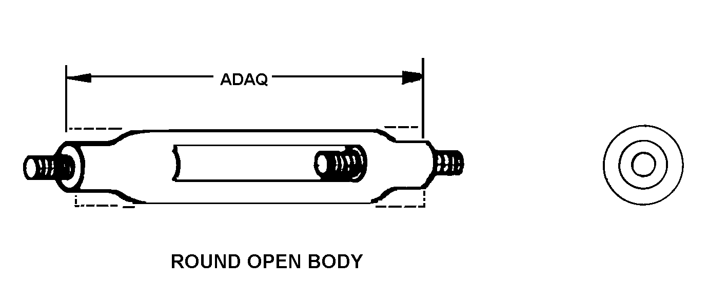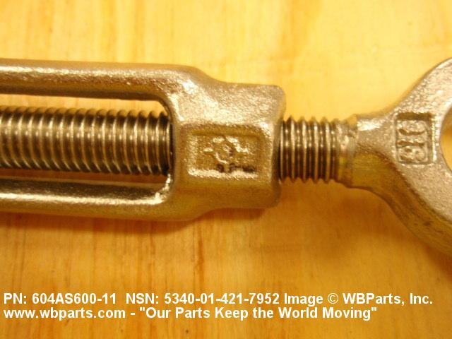5340-00-205-6012 A metal loop, sleeve, or solid body with end pulls, having both ends threaded or one end threaded and the other end designed to accommodate a swivel. Items with both ends threaded shall have right hand screw threads on one end and left hand screw threads on the other. It may include lock nuts, check nuts, jam nuts, and/or terminal attachment(s) such as hooks, rings, and the like. It is designed to regulate the distance (take-up) between two points by turning. See also PELICAN HOOK AND TURNBUCKLE ASSEMBLY; and TIE ROD, TENSIONING, THREADED END.