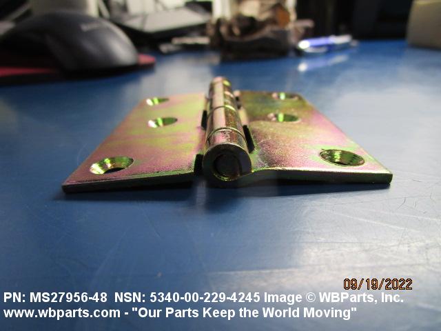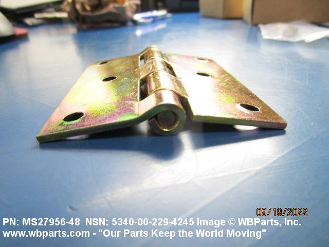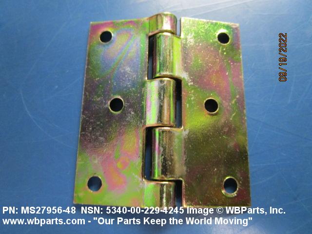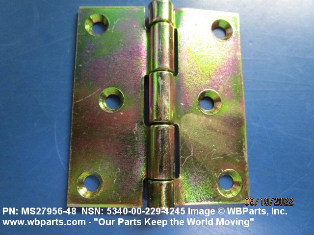 5340-00-229-4245 A hinge usually with rectangularly shaped leaves. The dimension parallel to the hinge pin must be greater than the dimension transverse to the hinge pin. It may have a tension coil spring at its pivot(s) for closing action, and may have a third member between its pivot(s) to permit the door, or the like, to swing in an arc from either side.