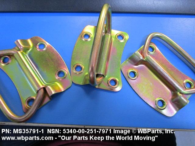 5340-00-251-7971 An item, usually basically semicircular or rectangular, designed to be swivel mounted to another item such as a container, chest, drawer, or door to provide facilities for lifting, opening, pulling, and the like. It may be with or without a mounting plate. Excludes HANDLE, DOOR.