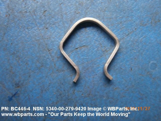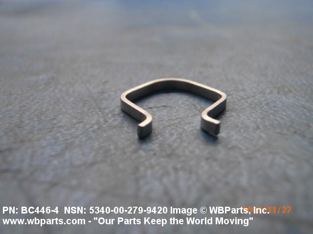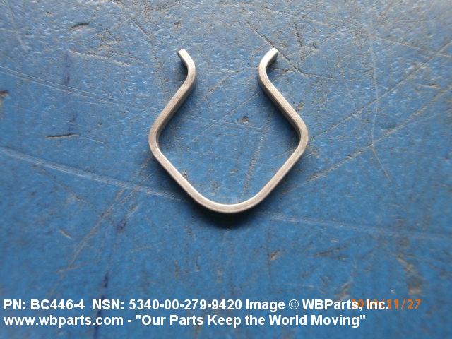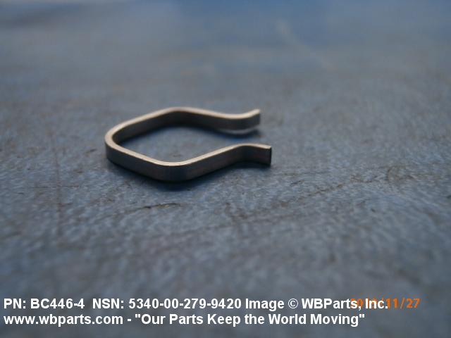 5340-00-279-9420 A clip formed from resilient wire stock into a shape resembling the letter U, with each of the prongs having one or more curvatures along its length. It is designed to hold itself in place by its inherent spring action when fitted into the groove(s) or notch(es) of the item upon which a part, shaft, pin, or a like item is to be held in place. See also PIN, LOCK; RING, RETAINING and CLIP, SPRING TENSION. For items specifically designed for aviaton, see CLIP(1), RETAINING, AVIATION.
