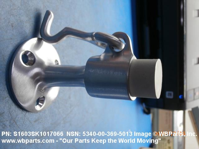 5340-00-369-5013 A device generally made of wood or metal consisting of a base and a tip; may or may not have a shank. The tip has a rubber buffer imbedded in it to prevent the door from striking or damaging the wall or baseboard.