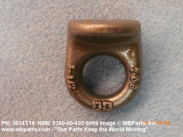 5340-00-402-9909 A rigid, metal, platelike item with an edgewise projection containing one or more openings. The opening is usually round or elliptical in shape. It is normally welded, bolted, or otherwise fixed to a structure. It is used as a catch or point of attachment for other items such as hooks, rope, and the like. Excludes, STAPLE, HASP; STRIKE, CATCH; and BRACKET, EYE, NON ROTATING SHAFT. See also ADAPTER (1), AIRCRAFT MOORING; ADAPTER (1), AIRCRAFT TOWING; TOWING EYE, AIRCRAFT; BOLT, EYE; COUPLER (as modified); and HASP, HINGED.20220400030Marine Hardware and Hull Items53400020Hardware, Commercial