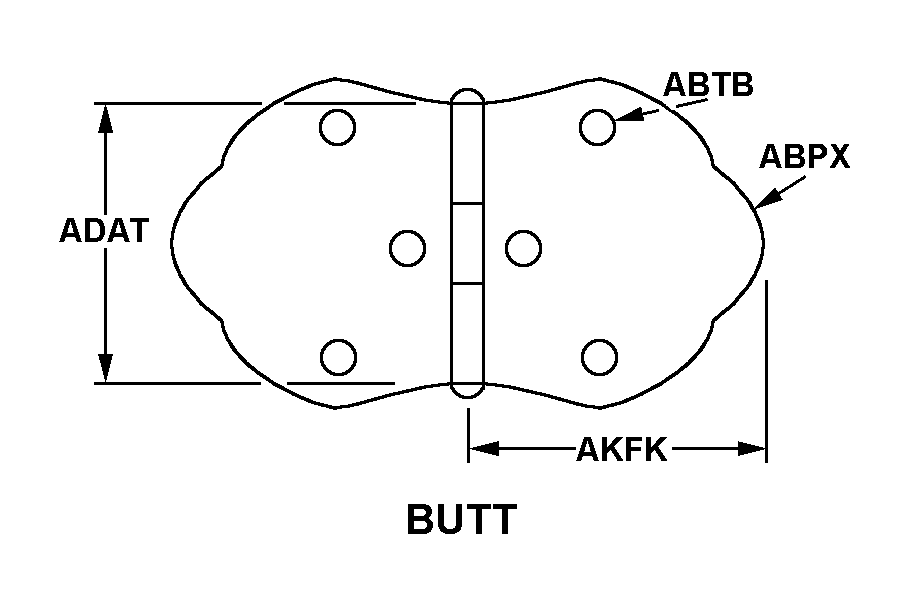5340-00-427-6523 A hinge usually with rectangularly shaped leaves. The dimension parallel to the hinge pin must be greater than the dimension transverse to the hinge pin. It may have a tension coil spring at its pivot(s) for closing action, and may have a third member between its pivot(s) to permit the door, or the like, to swing in an arc from either side.