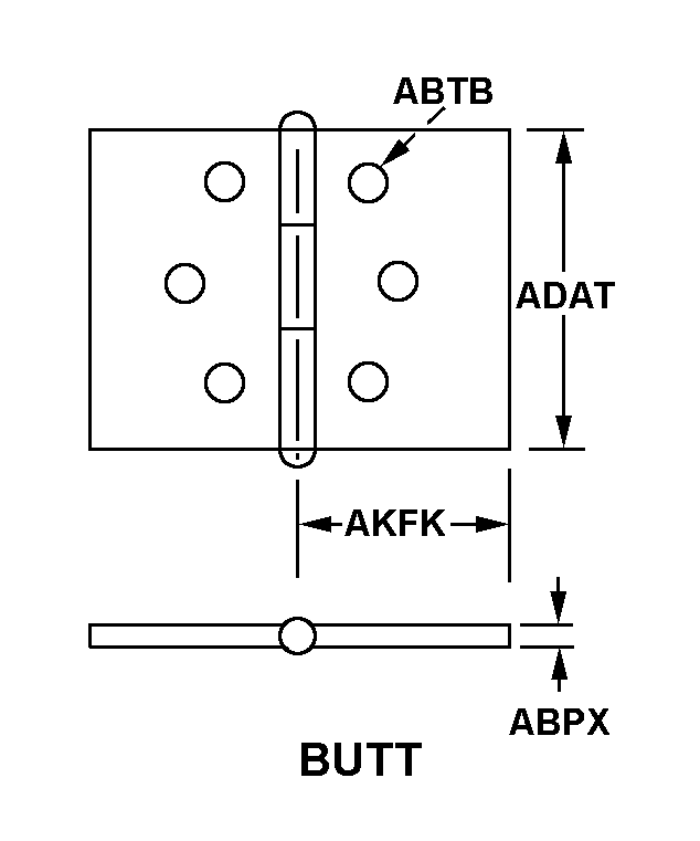 5340-00-550-2553 A hinge usually with rectangularly shaped leaves. The dimension parallel to the hinge pin must be greater than the dimension transverse to the hinge pin. It may have a tension coil spring at its pivot(s) for closing action, and may have a third member between its pivot(s) to permit the door, or the like, to swing in an arc from either side.