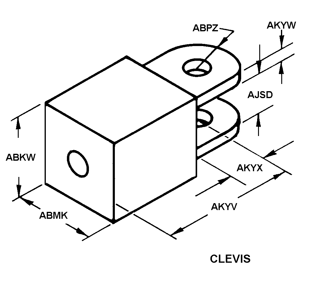 5340-00-598-9983 A forked part, having transverse hole(s) or slot(s) in each arm (prong) to accommodate a bolt, pin, or the like, and having a connection facility opposite the fork. It is designed to be attached to a shaft, rod, turnbuckle or the like by welding, threading, and/or pinning. May include provisions for locking. See also YOKE, UNIVERSAL JOINT and CONNECTOR, ROD END. For items specifically designed for aviation, see CLEVIS, ROD END, AVIATION.20210050018Guns, through 30mm53400020Hardware, Commercial