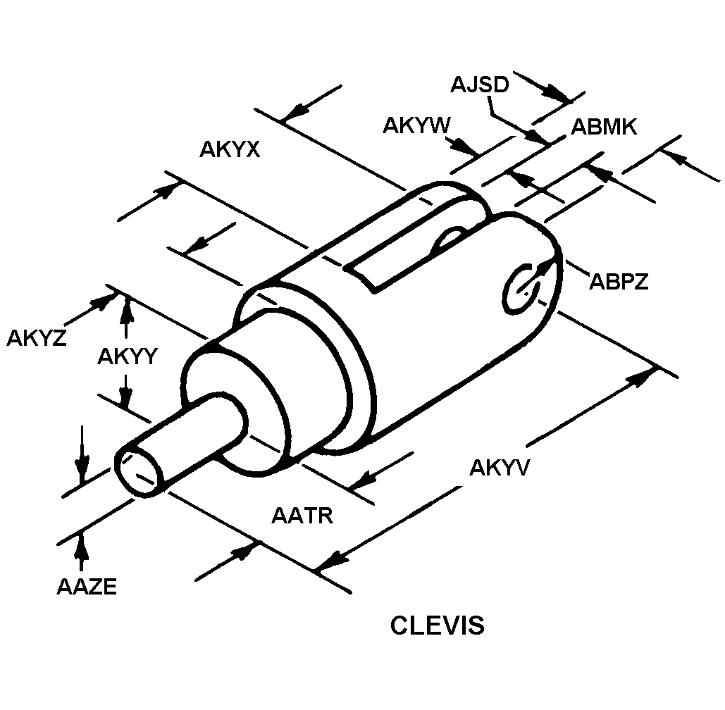 5340-00-629-8903 A forked part, having transverse hole(s) or slot(s) in each arm (prong) to accommodate a bolt, pin, or the like, and having a connection facility opposite the fork. It is designed to be attached to a shaft, rod, turnbuckle or the like by welding, threading, and/or pinning. May include provisions for locking. See also YOKE, UNIVERSAL JOINT and CONNECTOR, ROD END. For items specifically designed for aviation, see CLEVIS, ROD END, AVIATION.20210050018Guns, through 30mm53400020Hardware, Commercial