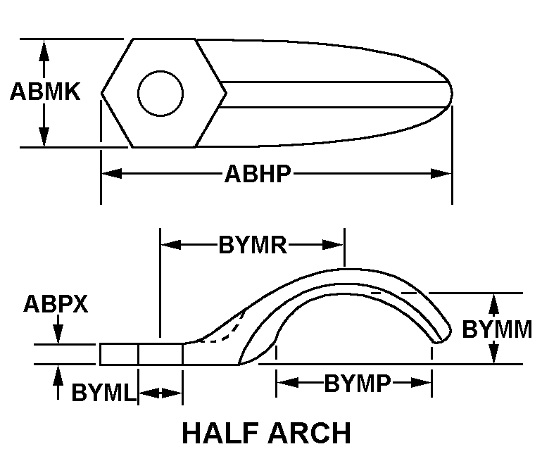 | DISTANCE BETWEEN BASE AND INSIDE OF ARCH | 0.750 INCHES NOMINAL |