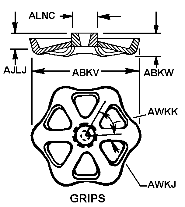 5340-00-691-2658 An item having a major diameter of 3 or more inches (76.2mm) other than items having spoked or sumulated spoked construction, which may be under 3 inches (76.2mm) designed to be gripped by the hand to transmit rotary motion to other devices through a center axis, fabricated in the form of a solid body with simulated spokes or a recessed surface between the rim and the hub, or it may be built up in the form of a frame having a central hub connected to the rim by the spokes. It may have reference markings in the form of dots, arrows, hairline, etc., to indicate the relative position and/or direction of rotation of the item(s) with which it is used. It may also include an integral ratchet device. For similar items having a maximum diameter of less than 3 inches (76.2mm), see KNOB. For items calibrated in units or series of divisions denoting relative positioning of associated devices, see DIAL (as modified). Excludes STEERING WHEEL.