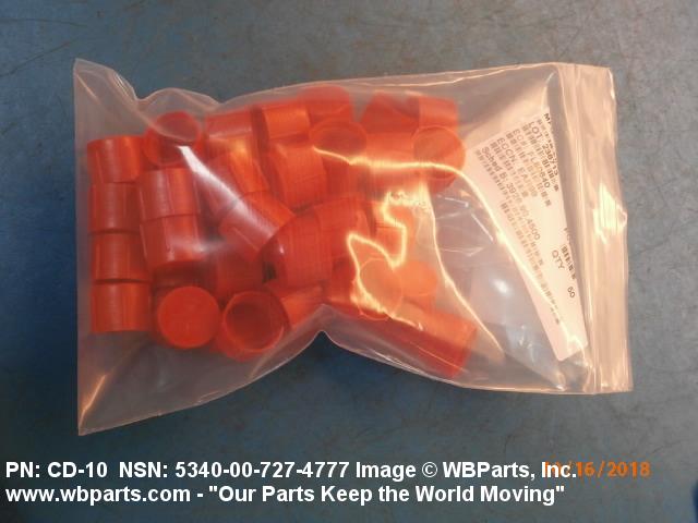 5340-00-727-4777 An item specifically designed to fit over the opening(s) of various items to provide mechanical protection and/or to prevent the entrance of foreign matter during painting, shipping, storage, or the like. It is not designed to retain fluids under pressure during equipment operation. Excludes COVER, ELECTRICAL CONNECTOR; HOOD, SEALING, BOTTLE; and STOPPER, BOTTLE. For items designed to fit into or over the opening(s) of various items, see CAP-PLUG, PROTECTIVE, DUST AND MOISTURE SEAL.
