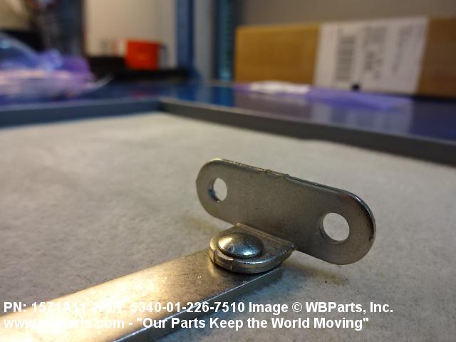 5340-00-737-5327 A device designed to support either a slotted (sliding action) or a hinged device to support in the unfolded or extended position. Commonly used to brace and/or lock into position such items as card table legs, chest lids, folding counters, desk tops and trunk lids.