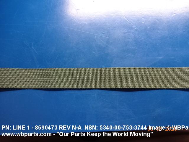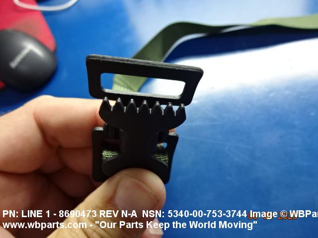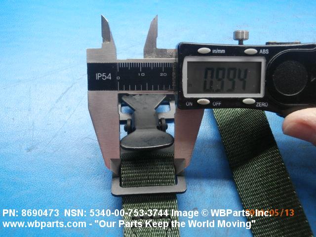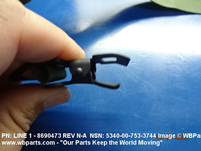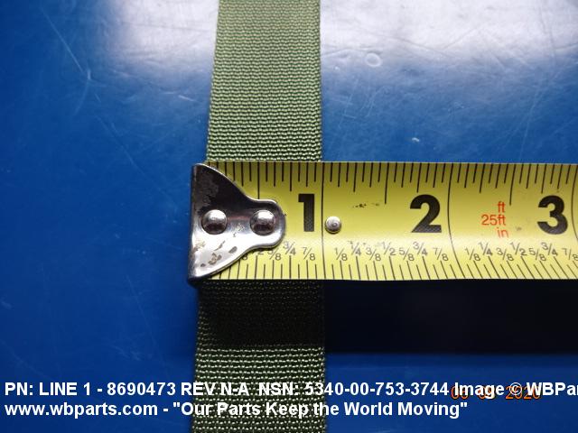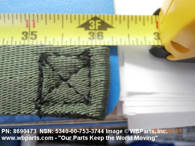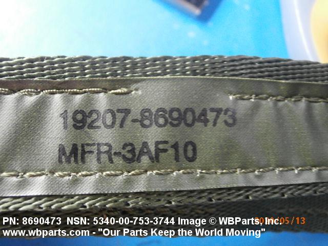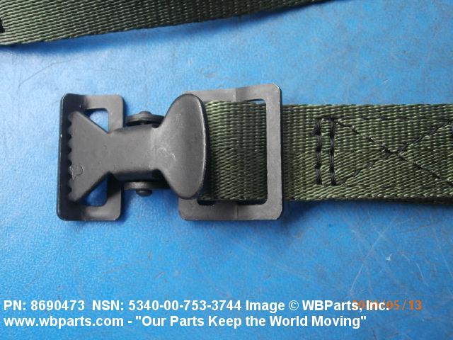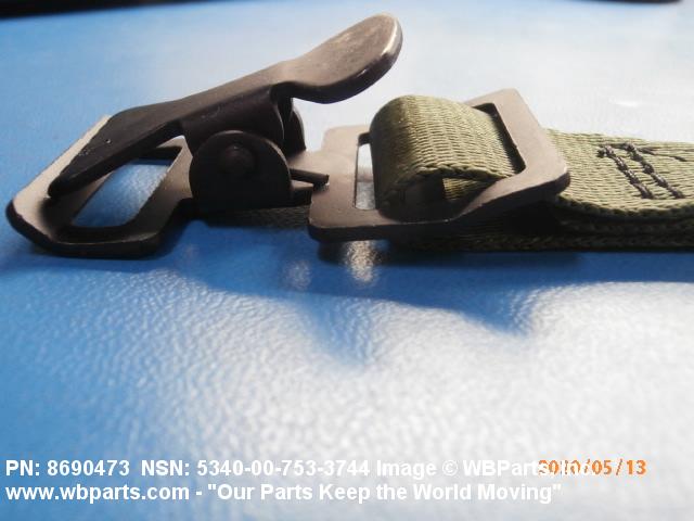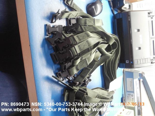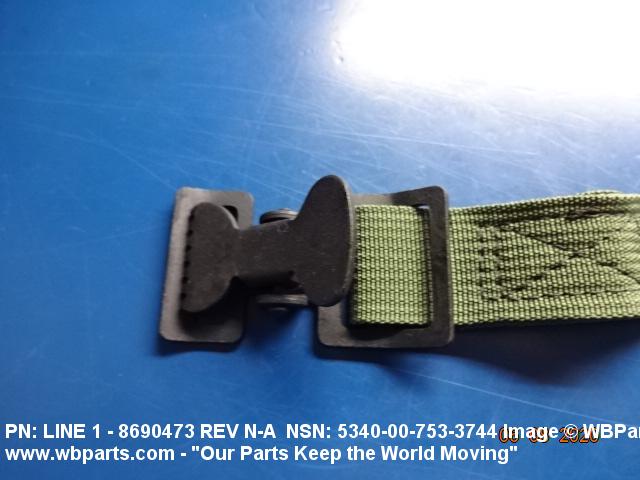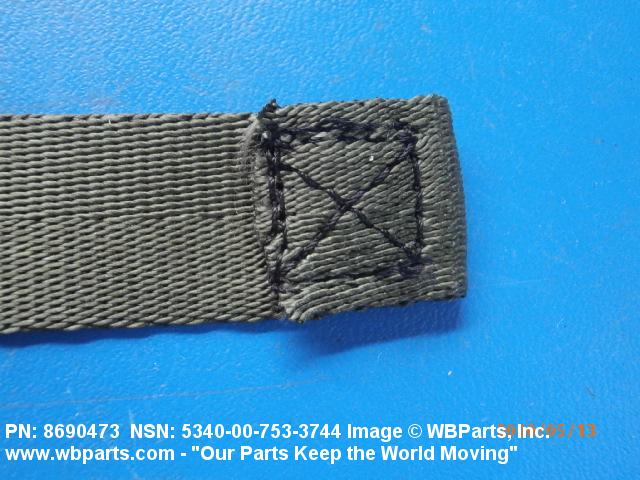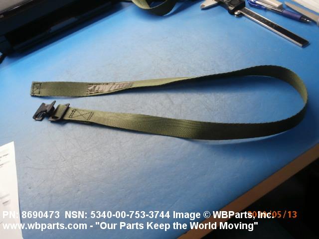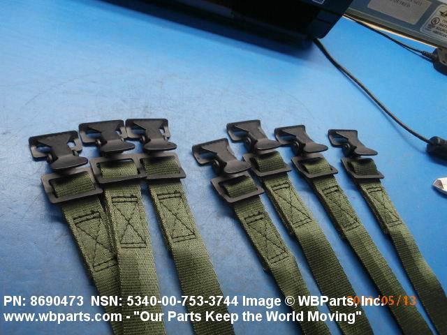 5340-00-753-3744 A narrow strip of webbing cut to a definite length, having one or both ends processed. It is usually designed for, and may have, one or more attachments or fasteners, such as BUCKLE; LOOP, STRAP FASTENER; strap end clip; RING, DEE; Hook; and the like. Excludes STRAP, BERTH, MATTRESS RETAINING; STRAP, CHIN; safety straps; and WEBBING, TEXTILE. Do not use if a more specific item name applies.20416800049Miscellaneous Aircraft Accessories and Components53400020Hardware, Commercial84650020Individual Equipment84700015Armor, Personal
