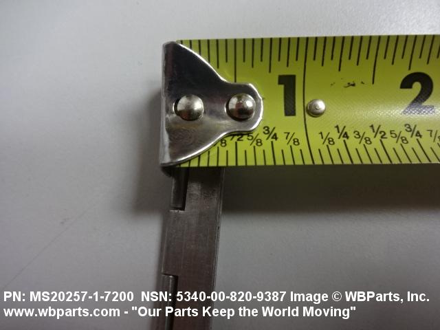 5340-00-820-9387 A hinge usually with rectangularly shaped leaves. The dimension parallel to the hinge pin must be greater than the dimension transverse to the hinge pin. It may have a tension coil spring at its pivot(s) for closing action, and may have a third member between its pivot(s) to permit the door, or the like, to swing in an arc from either side.