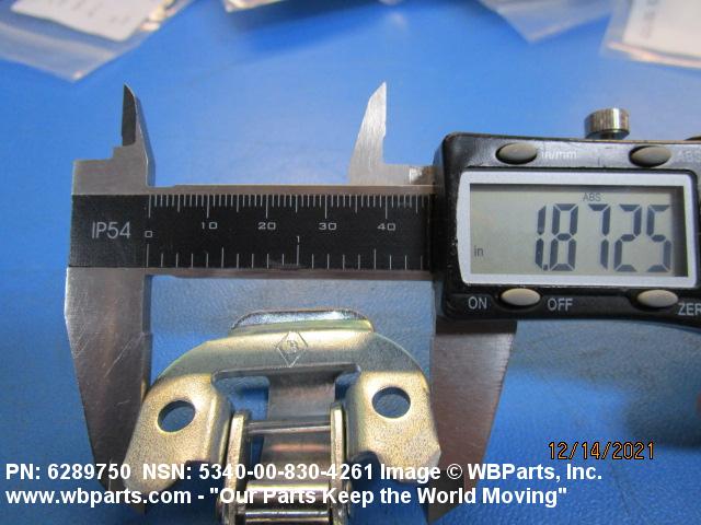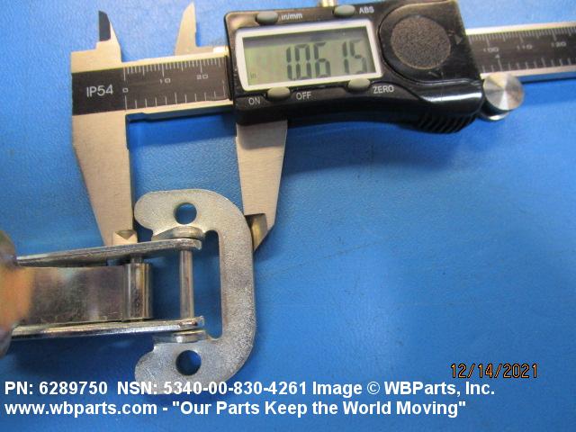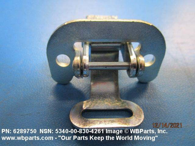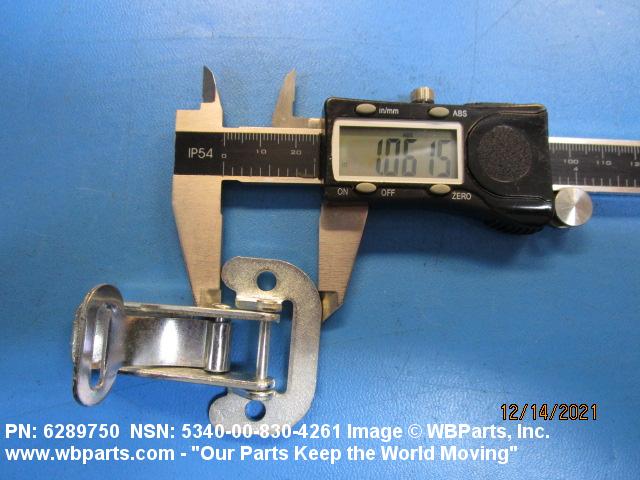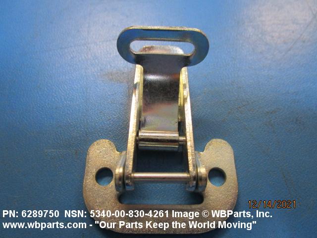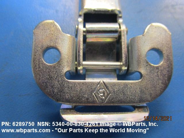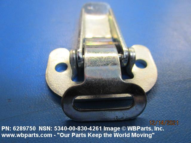 5340-00-830-4261 A positive fastening device consisting of a mountable base with an extended loop, claw, or the like. It may include a catch strike and mounting hardware for its complete installation on flat surfaces. The loop, claw, or the like can be manually engaged or disengaged readily for the purpose of securing the mating sections of a suitcase, locker-trunk, shipping and storage container, prefabricated building, tool chest or the like. Excludes CATCH, ELBOW; CATCH, FLUSH; CATCH, FRICTION; and LATCH or LOCK (as modified).