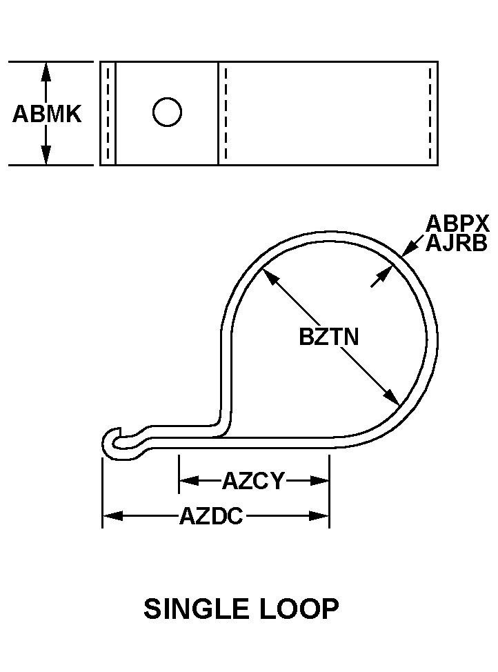 | CENTER TO CENTER DISTANCE BETWEEN LOOP AND MOUNTING HOLE | 0.812 INCHES NOMINAL |