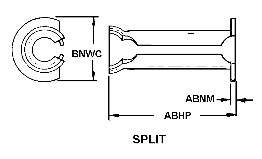 5340-00-945-1697 A tubular item of resilient metallic material, split along its entire length and having a flange at one end, usually with projecting arms or prongs extending from the body. It is designed to be inserted into a hole in a panel and held in place by spring tension. It is used to retain unthreaded items such as a pin or a rivet.