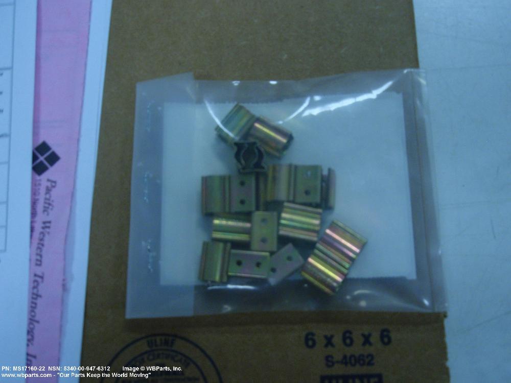 5340-00-947-6312 A preformed item of semirigid material designed to retain, position, fasten, or support other items, such as cable(s), access cover(s), by its own inherent spring action. It may be fastened to a structure by bolt(s), clip(s), screw(s), and the like. For items conducting electric current, see CLIP, ELECTRICAL or CLAMP, ELECTRICAL. For items which partially surround an item, see STRAP, RETAINING. For items which entirely surround an item and do not have inherent spring tension, see CLAMP, LOOP. See also CLIP, RETAINING. Do not use if a more specific item name is available.