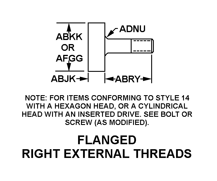 | STYLE DESIGNATOR | 14 FLANGED RIGHT EXTERNAL THREADS |
