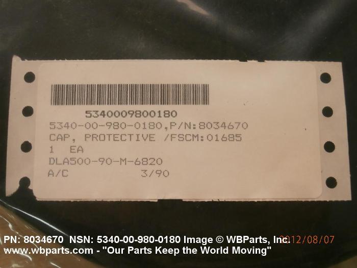Part Alternates: 8034670, 5340-00-980-0180, 00-980-0180, 5340009800180, 009800180