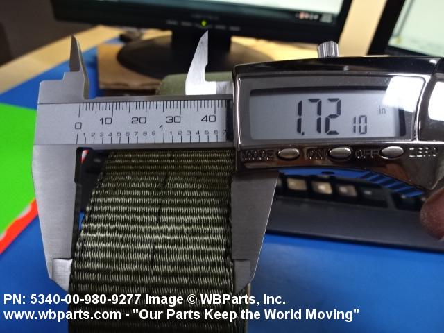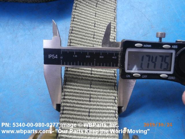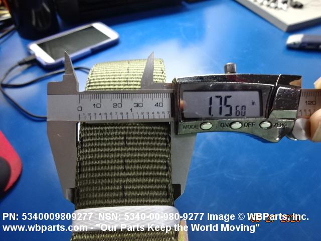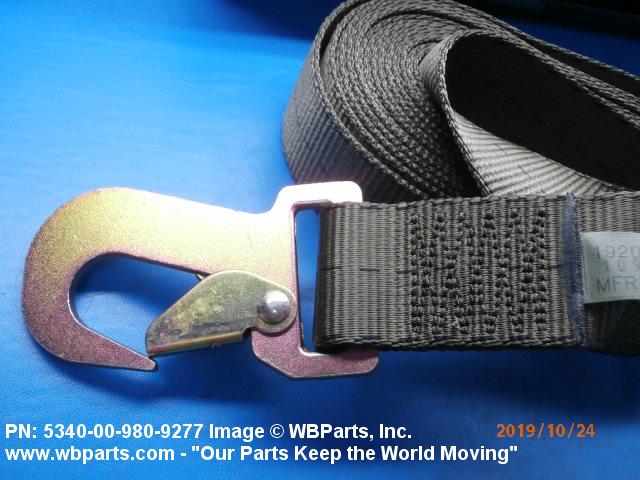 5340-00-980-9277 A narrow strip of webbing cut to a definite length, having one or both ends processed. It is usually designed for, and may have, one or more attachments or fasteners, such as BUCKLE; LOOP, STRAP FASTENER; strap end clip; RING, DEE; Hook; and the like. Excludes STRAP, BERTH, MATTRESS RETAINING; STRAP, CHIN; safety straps; and WEBBING, TEXTILE. Do not use if a more specific item name applies.20416800049Miscellaneous Aircraft Accessories and Components53400020Hardware, Commercial84650020Individual Equipment84700015Armor, Personal