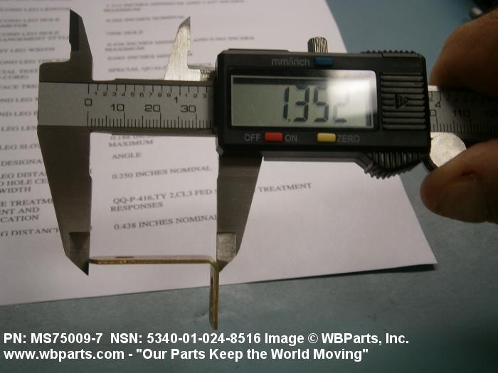 | FIRST LEG WIDTH | 0.438 INCHES MINIMUM AND 0.562 INCHES MAXIMUM |