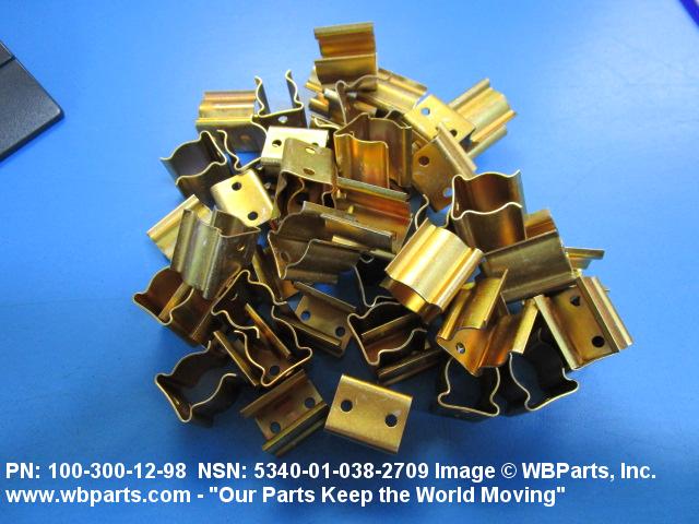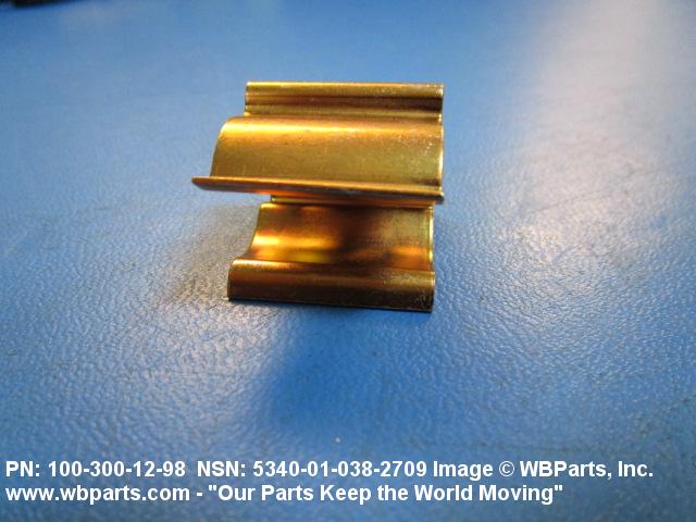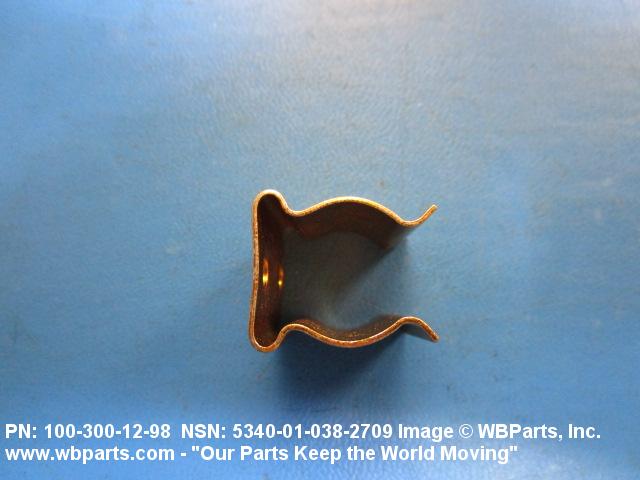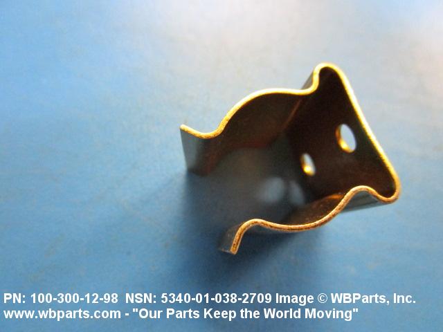 5340-01-038-2709 A preformed item of semirigid material designed to retain, position, fasten, or support other items, such as cable(s), access cover(s), by its own inherent spring action. It may be fastened to a structure by bolt(s), clip(s), screw(s), and the like. For items conducting electric current, see CLIP, ELECTRICAL or CLAMP, ELECTRICAL. For items which partially surround an item, see STRAP, RETAINING. For items which entirely surround an item and do not have inherent spring tension, see CLAMP, LOOP. See also CLIP, RETAINING. Do not use if a more specific item name is available.