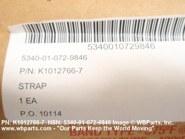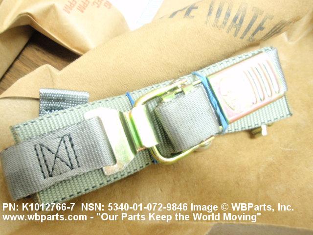 5340-01-072-9846 A narrow strip of webbing cut to a definite length, having one or both ends processed. It is usually designed for, and may have, one or more attachments or fasteners, such as BUCKLE; LOOP, STRAP FASTENER; strap end clip; RING, DEE; Hook; and the like. Excludes STRAP, BERTH, MATTRESS RETAINING; STRAP, CHIN; safety straps; and WEBBING, TEXTILE. Do not use if a more specific item name applies.20416800049Miscellaneous Aircraft Accessories and Components53400020Hardware, Commercial84650020Individual Equipment84700015Armor, Personal