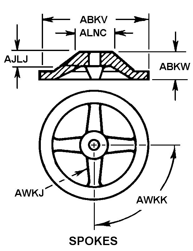 5340-01-079-8302 An item having a major diameter of 3 or more inches (76.2mm) other than items having spoked or sumulated spoked construction, which may be under 3 inches (76.2mm) designed to be gripped by the hand to transmit rotary motion to other devices through a center axis, fabricated in the form of a solid body with simulated spokes or a recessed surface between the rim and the hub, or it may be built up in the form of a frame having a central hub connected to the rim by the spokes. It may have reference markings in the form of dots, arrows, hairline, etc., to indicate the relative position and/or direction of rotation of the item(s) with which it is used. It may also include an integral ratchet device. For similar items having a maximum diameter of less than 3 inches (76.2mm), see KNOB. For items calibrated in units or series of divisions denoting relative positioning of associated devices, see DIAL (as modified). Excludes STEERING WHEEL.