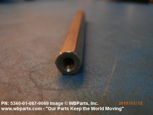 5340-01-087-9069 A standoff that must have a threaded end(s) or be internally threaded its full length. For items having external threads on both ends, see STUD (as modified). For items with an outside contour that is the same for the entire length, are flat on top and bottom, having internal threads its full length, and the length does not exceed twice the width across the flats or outside diameter, see NUT (as modified); use maximum dimensions(s) for compliance.