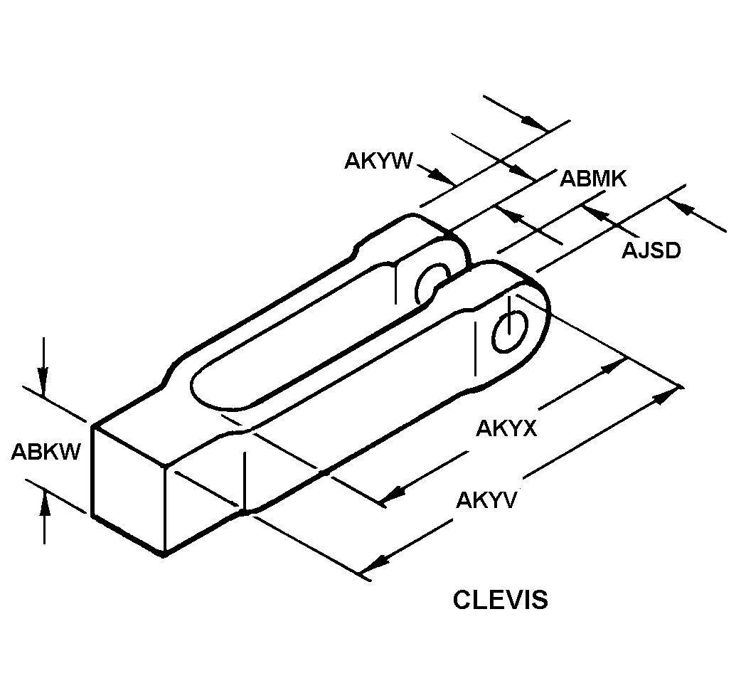 5340-01-099-0618 A forked part, having transverse hole(s) or slot(s) in each arm (prong) to accommodate a bolt, pin, or the like, and having a connection facility opposite the fork. It is designed to be attached to a shaft, rod, turnbuckle or the like by welding, threading, and/or pinning. May include provisions for locking. See also YOKE, UNIVERSAL JOINT and CONNECTOR, ROD END. For items specifically designed for aviation, see CLEVIS, ROD END, AVIATION.20210050018Guns, through 30mm53400020Hardware, Commercial