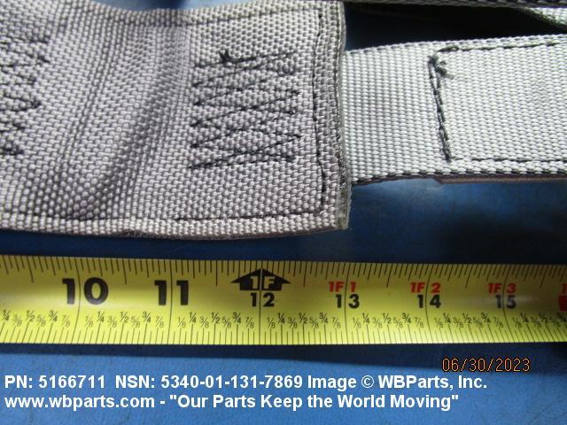 5340-01-131-7869 A narrow strip of webbing cut to a definite length, having one or both ends processed. It is usually designed for, and may have, one or more attachments or fasteners, such as BUCKLE; LOOP, STRAP FASTENER; strap end clip; RING, DEE; Hook; and the like. Excludes STRAP, BERTH, MATTRESS RETAINING; STRAP, CHIN; safety straps; and WEBBING, TEXTILE. Do not use if a more specific item name applies.20416800049Miscellaneous Aircraft Accessories and Components53400020Hardware, Commercial84650020Individual Equipment84700015Armor, Personal