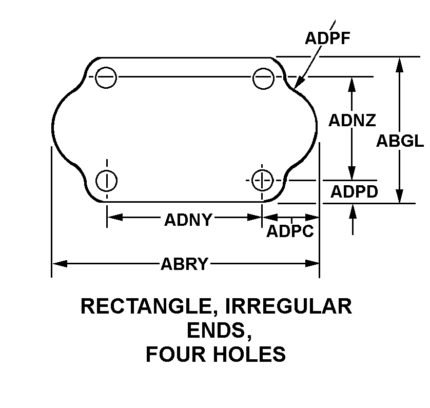 | PERIPHERAL SHAPE STYLE | 105 RECTANGLE, IRREGULAR ENDS, FOUR HOLES |