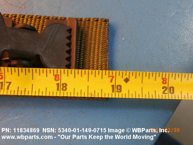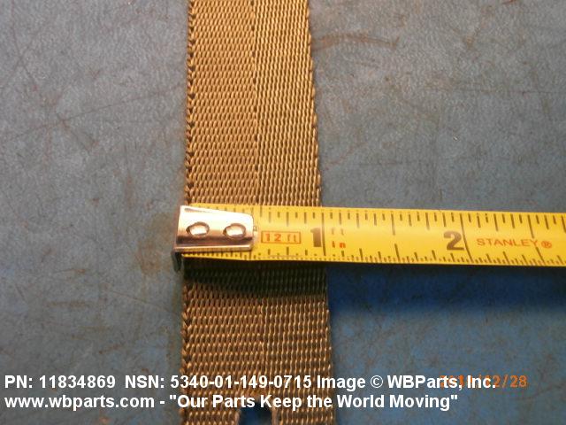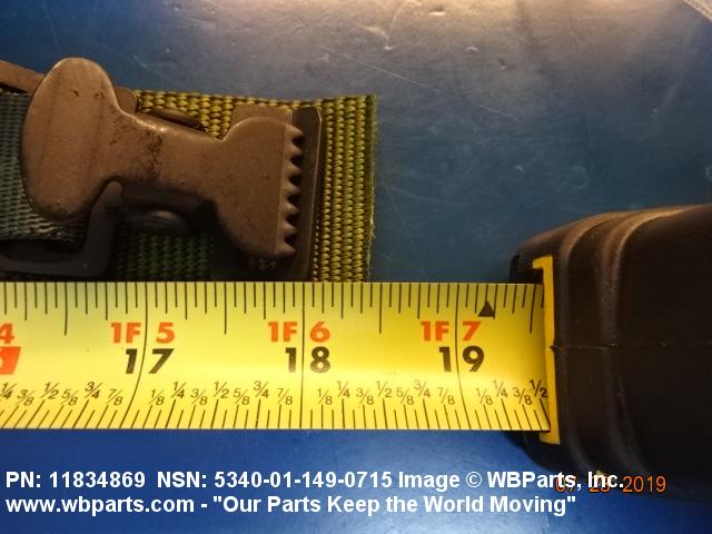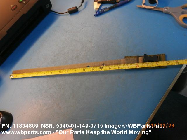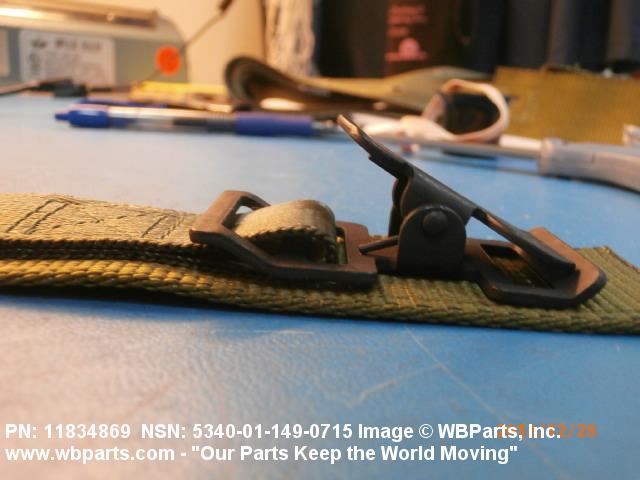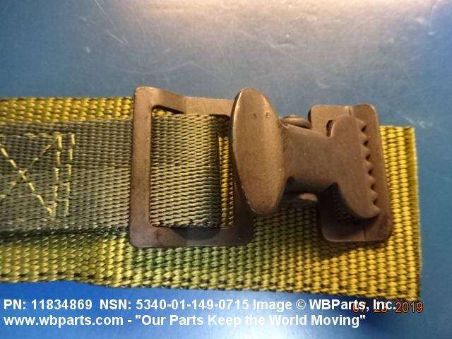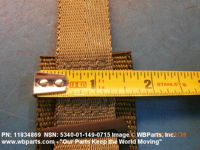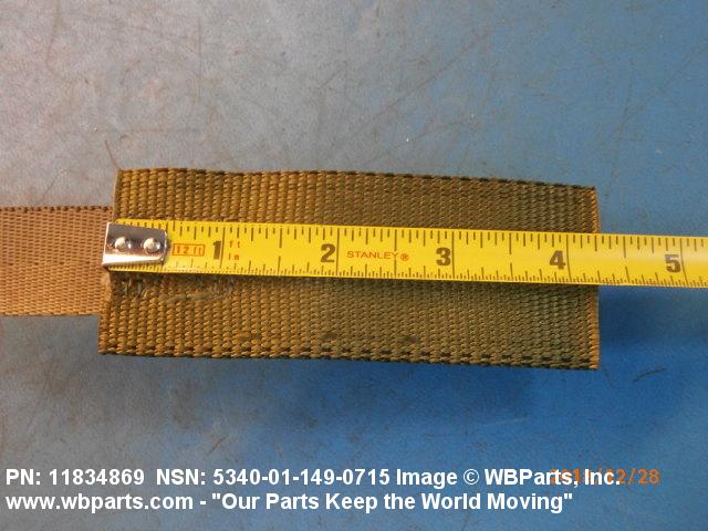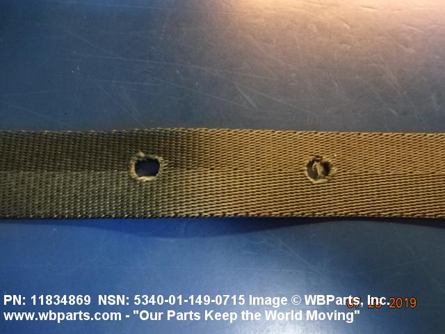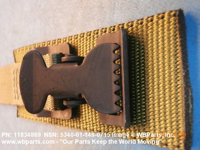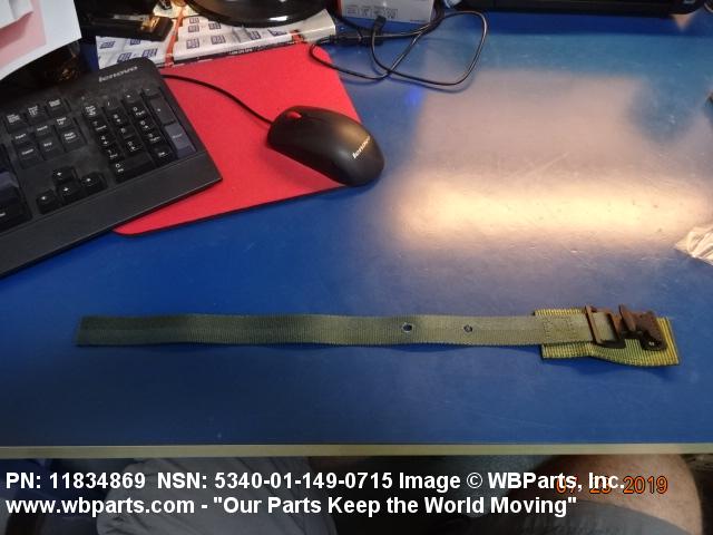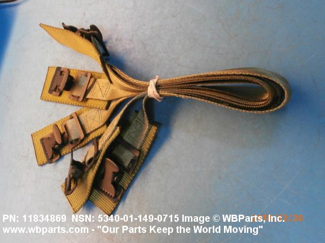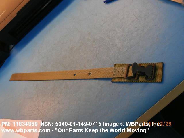 5340-01-149-0715 A narrow strip of webbing cut to a definite length, having one or both ends processed. It is usually designed for, and may have, one or more attachments or fasteners, such as BUCKLE; LOOP, STRAP FASTENER; strap end clip; RING, DEE; Hook; and the like. Excludes STRAP, BERTH, MATTRESS RETAINING; STRAP, CHIN; safety straps; and WEBBING, TEXTILE. Do not use if a more specific item name applies.20416800049Miscellaneous Aircraft Accessories and Components53400020Hardware, Commercial84650020Individual Equipment84700015Armor, Personal