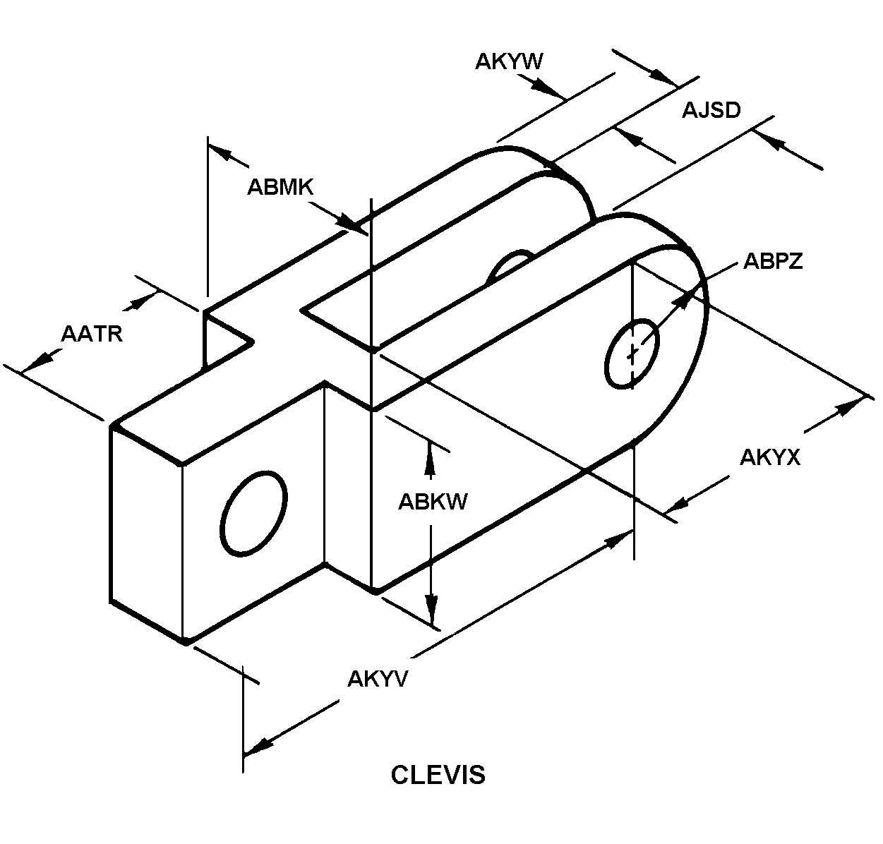 5340-01-160-2373 A forked part, having transverse hole(s) or slot(s) in each arm (prong) to accommodate a bolt, pin, or the like, and having a connection facility opposite the fork. It is designed to be attached to a shaft, rod, turnbuckle or the like by welding, threading, and/or pinning. May include provisions for locking. See also YOKE, UNIVERSAL JOINT and CONNECTOR, ROD END. For items specifically designed for aviation, see CLEVIS, ROD END, AVIATION.20210050018Guns, through 30mm53400020Hardware, Commercial