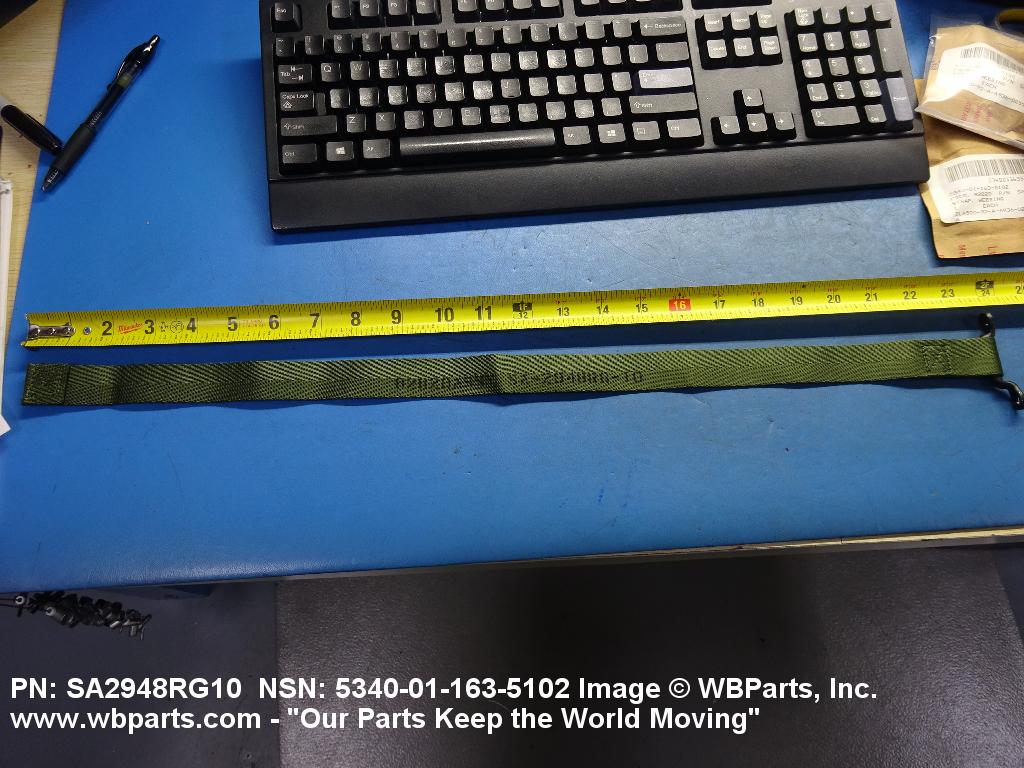 5340-01-163-5102 A narrow strip of webbing cut to a definite length, having one or both ends processed. It is usually designed for, and may have, one or more attachments or fasteners, such as BUCKLE; LOOP, STRAP FASTENER; strap end clip; RING, DEE; Hook; and the like. Excludes STRAP, BERTH, MATTRESS RETAINING; STRAP, CHIN; safety straps; and WEBBING, TEXTILE. Do not use if a more specific item name applies.20416800049Miscellaneous Aircraft Accessories and Components53400020Hardware, Commercial84650020Individual Equipment84700015Armor, Personal