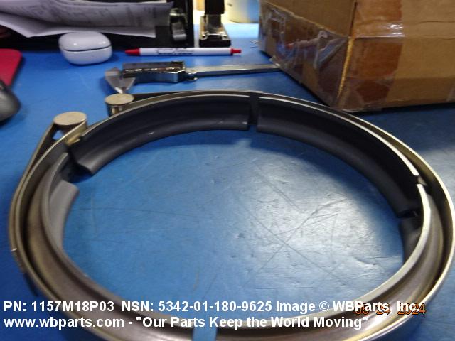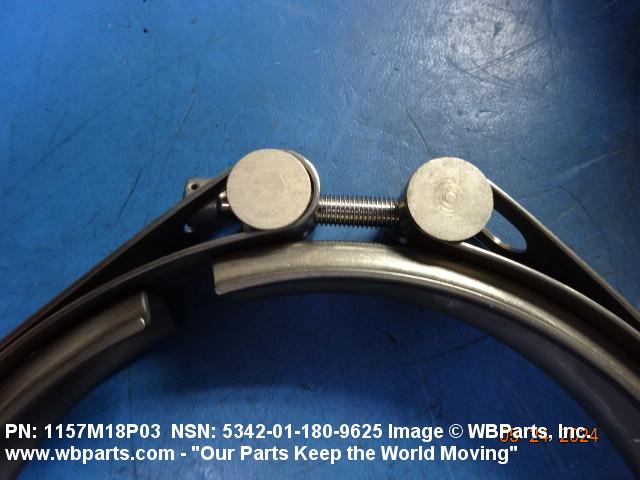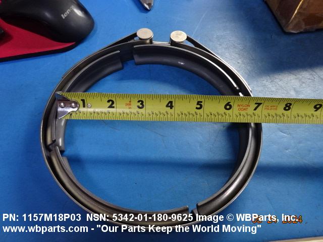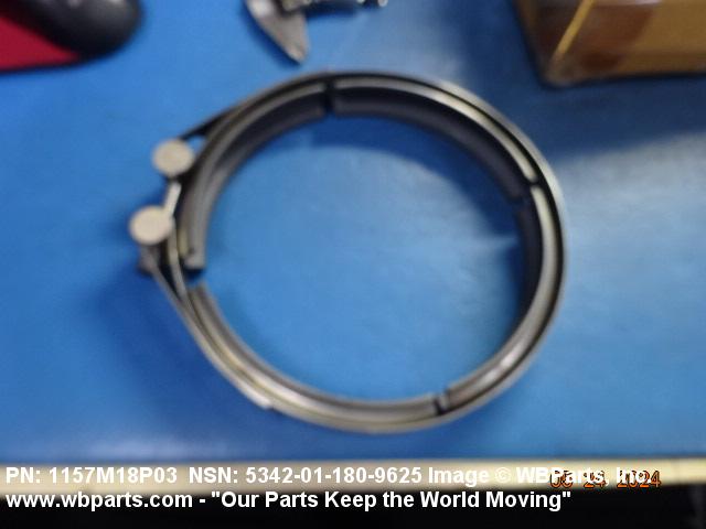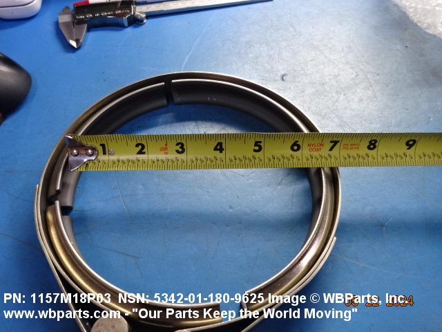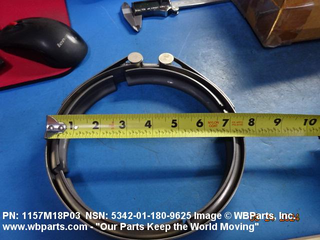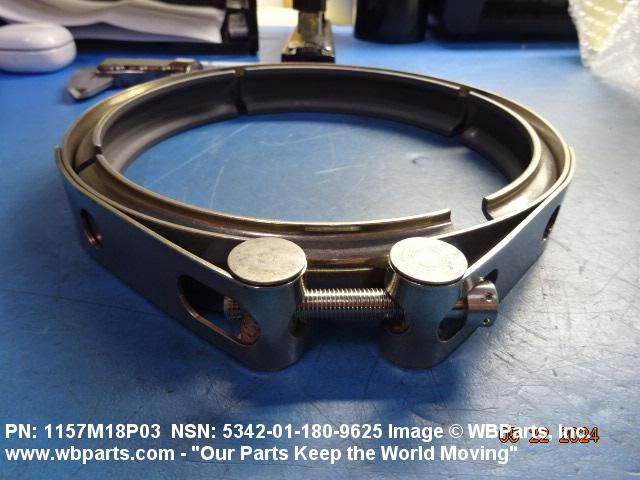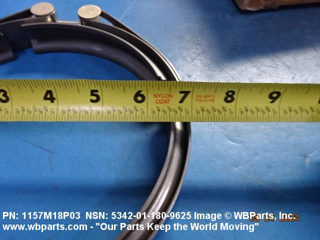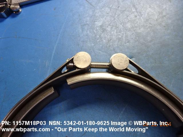 5340-01-180-9625 A metal loop having either a V or U cross section or channelled segment(s). It may be attached to a flat band. It is designed to create a fluid tight joint and/or connect pipe, tubing, tank cover(s), duct(s) and the like, by mating with flanged or beaded ferrule(s), flared, or beaded ends. It may or may not have a sealing inner liner. A latch or latches of the quick coupling type, nut or bolt type, or threaded trunnion type is (are) used to lock and adjust the band. Excludes COUPLING, CLAMP, PIPE and RING, LOCKING, METAL DRUM COVER.