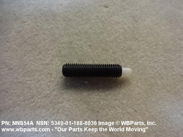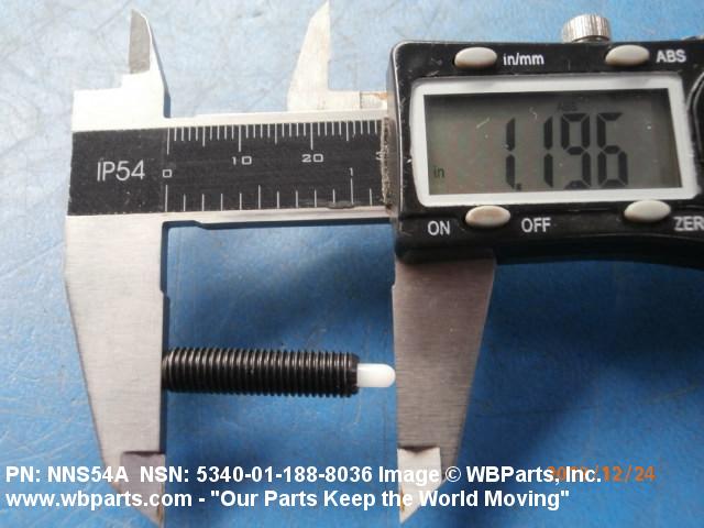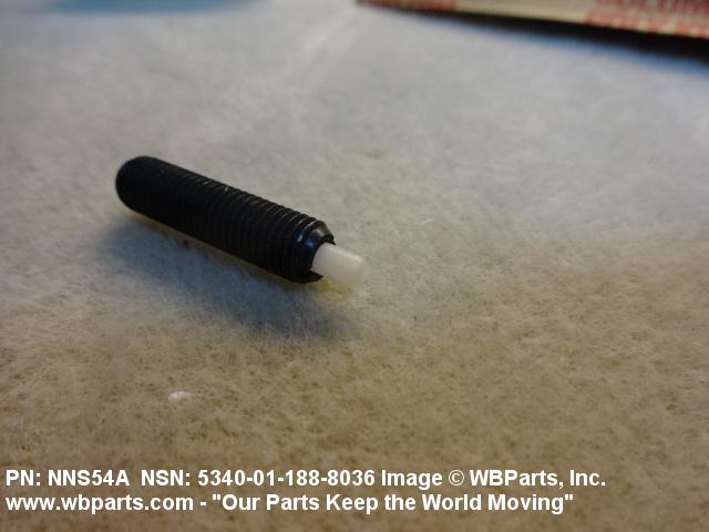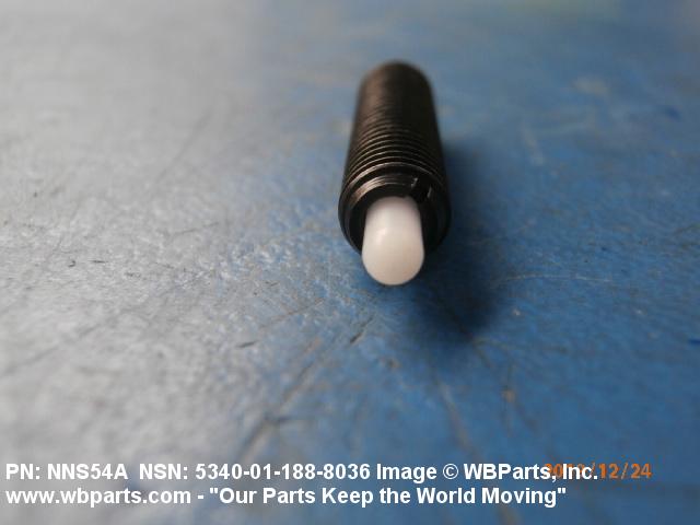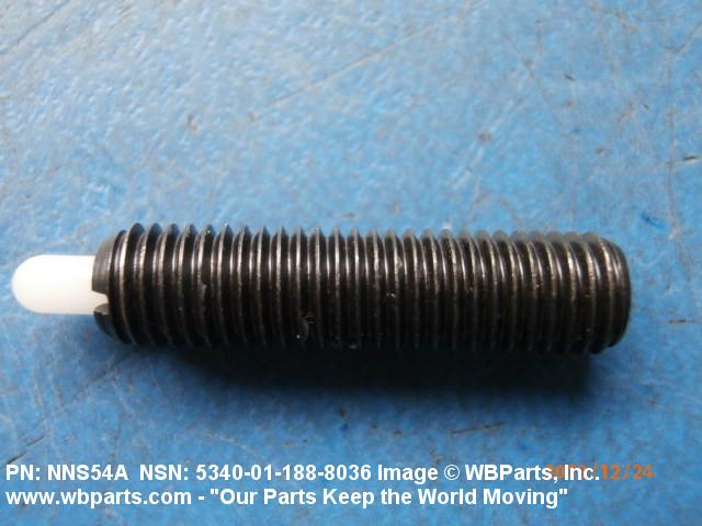 5340-01-188-8036 An externally threaded tubular item containing a spring loaded device (pin, ball, etc.). The device is held in the thrown position by the spring and recedes when pressure is exerted against it. It is used as a locator, detent, and the like.